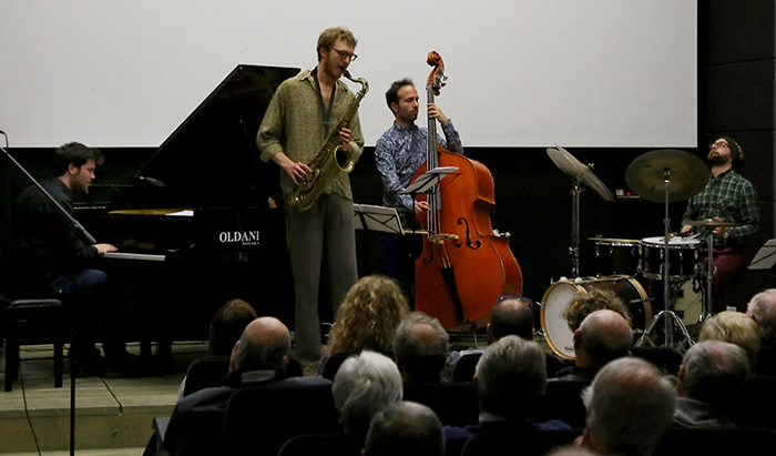 Gran bella serata quella di venerdì scorso con il "Trio" di Alessandro Lanzoni e lo "special guest" Dan kilzerman per l'appuntamento degli Amici della Musica nella stagione del Cinquantennale del sodalizio oleggese. La sala dell'Auditorium del Teatro comunale era completamente affollata e il pubblico presente ha seguito con attenzione e partecipazione l'esibizione del quartetto jazz, e ha sottolineato con calorosi e insistiti applausi il programma che comprendeva anche alcune composizioni di Alessandro Lanzoni e uno speciale arrangiamento della notissima "Sofisticated lady" di Duke Ellington. Nel corso di ognuno dei pezzi suonati, gli spazi riservati ai solisti venivano riempiti da pezzi di bravura dei quattro jazzisti - che sarebbe forse meglio definire autentici musicisti nel senso più ampio e completo della parola - le cui improvvisazioni hanno realmente lasciato stupefatti e hanno catturato l'attenzione degli ascoltatori. In effetti il jazz presentato dai quattro musicisti e il loro modo, estremamente raffinato, di suonare era di livello assai alto, così come viene descritto dalla stampa specializzato ormai da diverso tempo. Dan Kinzelman al sassofono, Alessandro Lanzoni al pianoforte, Enrico Morello alla batteria e Matteo Bortone al contrabbasso hanno in realtà fatto capire anche a coloro che non conoscevano questo tipo di jazz "avanzato", che questo genere ha ormai assunto un ruolo fondamentale nello sviluppo della storia musica e affonda le sue radici nel contrappunto rivelato da Bach in poi, nella struttura (tema, variazioni, altro tema, altre variazioni, riprese, sviluppo, code, ecc.) della composizione musicale elaborata da Haydn e Beethoven tra la fine del 700 e i primi anni dell'800 e nell'organizzazione dei nuovi schemi tematici di Debussy e Ravel nei primi anni del 900. Di grande classe, con una linea evolutiva sempre coerente con l'impianto del brano che stavano suonando, sono state le "improvvisazioni" solistiche dei quattro musicisti e tutto il concerto - musica senza interruzioni (esclusi gli applausi naturalmente) per circa 90 minuti - è giunto al termine con tutto il pubblico molto soddisfatto, così come lo sono stati gli organizzatori della serata ai quali è stato richiesto di ripetere concerti jazz di questo tipo e di questa qualità. Non è difficile prevedere che il quartetto che è venuto a Oleggio farà molta strada, oltre a quella che ha già fatto, ed è apparsa a tutti molto meritata la considerazione in cui è tenuto, non solo in Italia, dai critici musicali che si occupano di jazz.