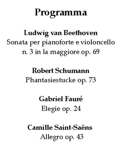 Musiche di Beethoven, Schumann, Fauré, Saint-Saëns