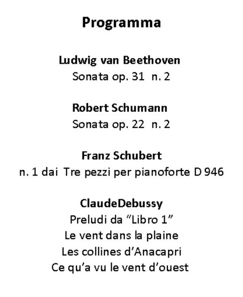 Musiche di Beethoven, Schumann, Schubert, Debussy