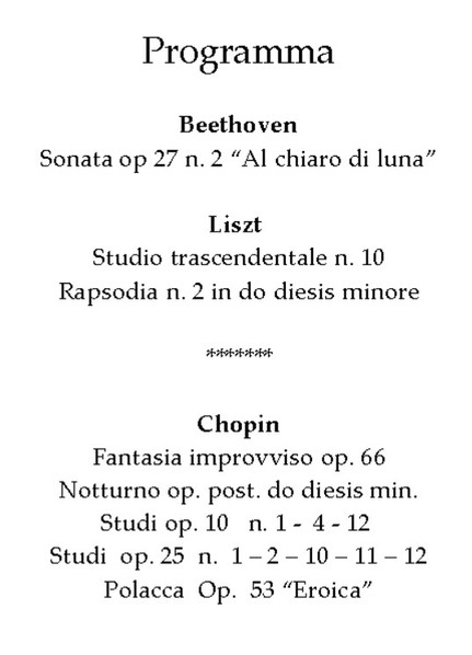 Musiche di L. van Beethoven, F. Liszt, F. Chopin
