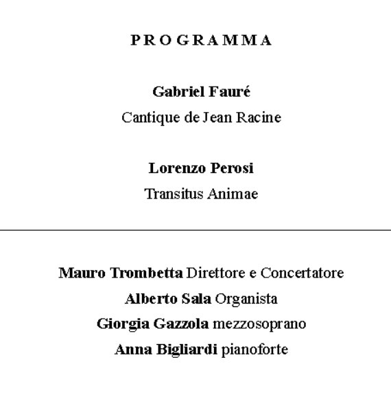 Musiche di Gabriel Faurè e Lorenzo Perosi Coro S. Gregorio Magno, Maestro Mauro Trombetta